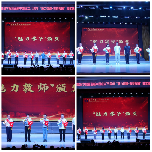文艺演出与颁奖环节同时进行,校、院两级领导先后上台为22位魅力学子、4位魅力教师、7个魅力班级、7个魅力寝室颁奖。