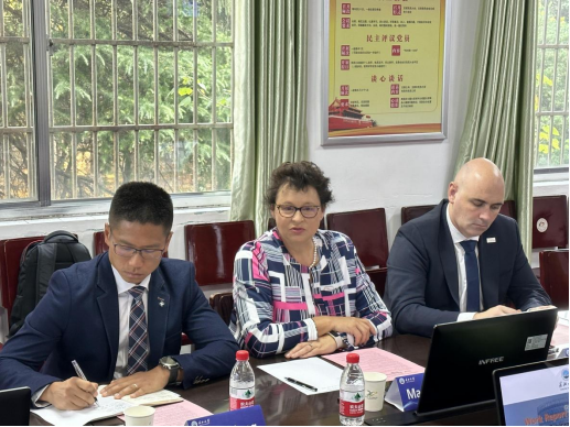 (通讯员 魏民生、郑新蓉)10月18日,爱尔兰香农理工大学工程与建筑环境公司经理Dr. Maria Kyne、工程与信息公司经理Dr. Sean Lyons、亚洲区主管Jack Meng代表团一行到访公司。国际交流与合作处处长凡启兵、副处长韩慧宁,城建公司党委书记谌姿、副经理肖桃李、黄向阳,土木系教师代表参加座谈会。会议由土木系副主任袁洪强主持。