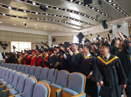 仪式环节结束后,大家在原场地合影留念。全体毕业生将手中的学士帽高高抛起,向自己的长大时光作最后的告别。至此,本次学位授予仪式圆满落幕。
