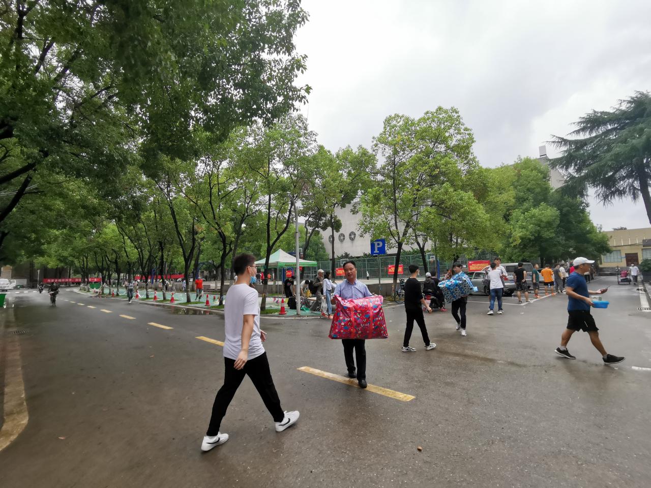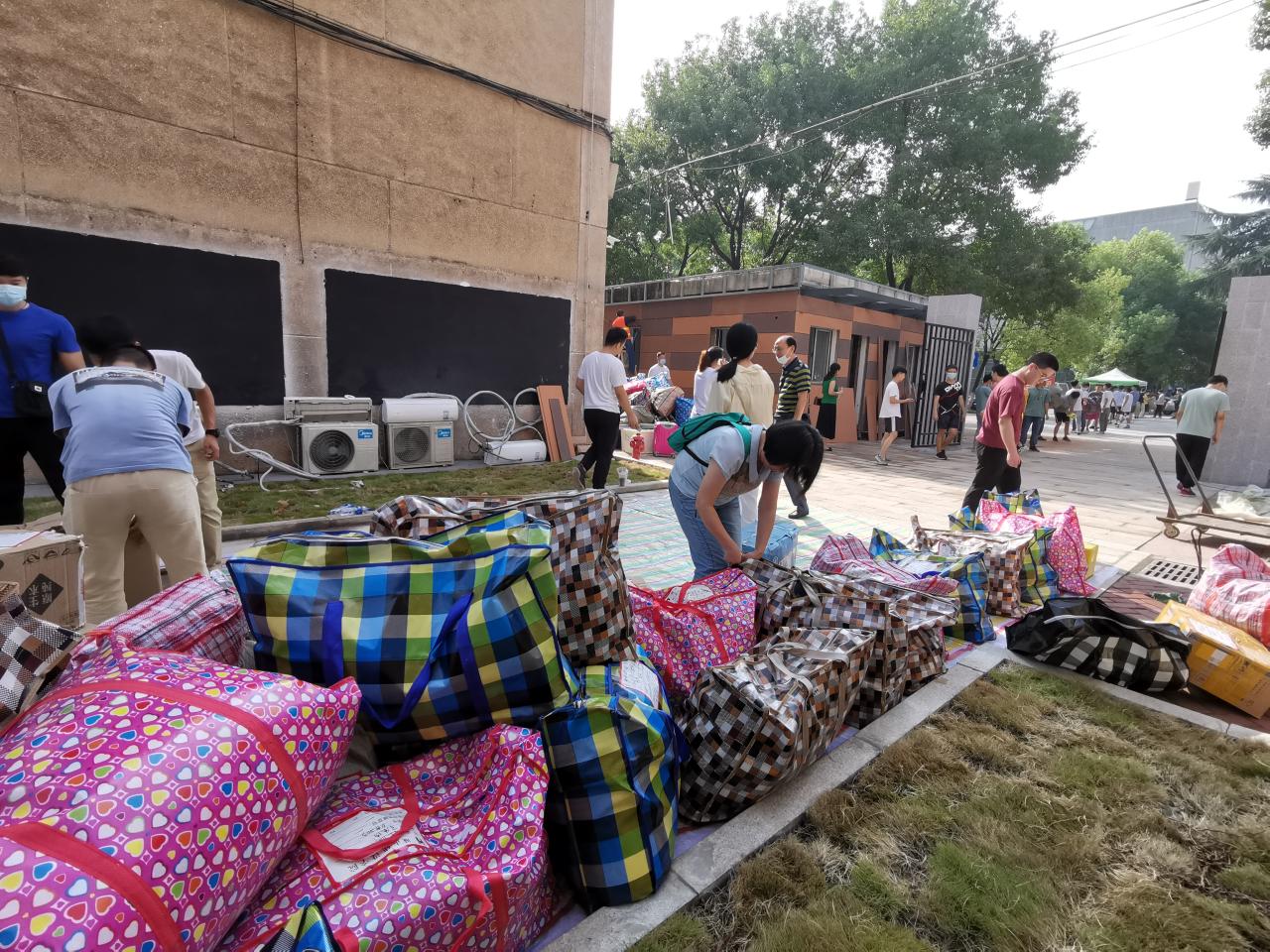 同学们作为搬迁的主体,提前做好了充分的准备和分工。在搬迁之前,同学们将行李做好了个人信息的标注。老师们统筹指挥,同学们从体育馆到女寝有序排成一条“人链”,行李一个接着一个,你传我我传他的方式递到寝室。寝室下面早早的布置好了临时存放点,班长清点行李件数和照看行李,其他同班男生帮忙搬到女生寝室内,定时定点做到无缝对接,实现各个楼栋包裹的全程记录和跟进。老师们统筹安排,临阵指挥;同学们准备充分,互帮互助。