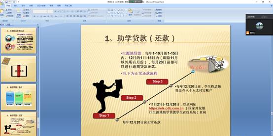 对于部分还有助学贷款的毕业生,公司建立了毕业贷款员工工作台帐,建立了QQ通知群,并在毕业年级班会上把还款政策、还款流程、支付宝生活号绑定方法详细地介绍给每一位同学。公司也高度重视毕业班的诚信教育,每场班会都有一个院领导参加,叮嘱员工要按时还款,遵纪守法,在就业时不能伪造虚假材料,肆意地与签约公司毁约,要深知明礼诚信的重要性,将诚信做人贯穿始终。
