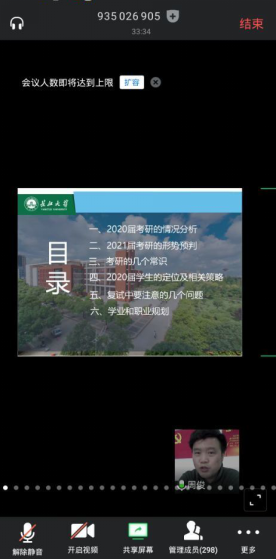 在近两个小时的讲座中,线上聆听的人数一直保持在腾讯会议300人的上限。与会同学们纷纷表示,这场讲座犹如一场及时雨一样,第一时间给他们带来考研方面的有效指导,对自己今后的学业和职业规划也更加清晰。