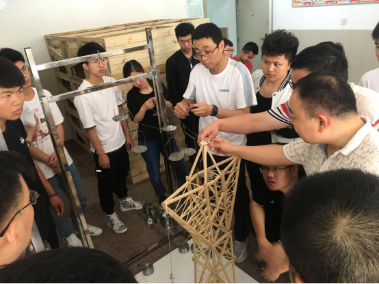 大赛现场气氛火热,人头攒动,参赛队伍在评委的指挥下依次进行结构模型的称重检测和承重加载。每一件参赛作品都结构精巧、富于创造,凝结了参赛同学们与时俱进、开拓创新的思维以及团队协作精神,充分展现了他们的思维创造力和结构设计能力。最后优胜的队伍将代表beats365参加湖北省老员工结构设计竞赛,得到晋级的前三名分别是由袁亮、张彤彤、万呈程所带领的小组。