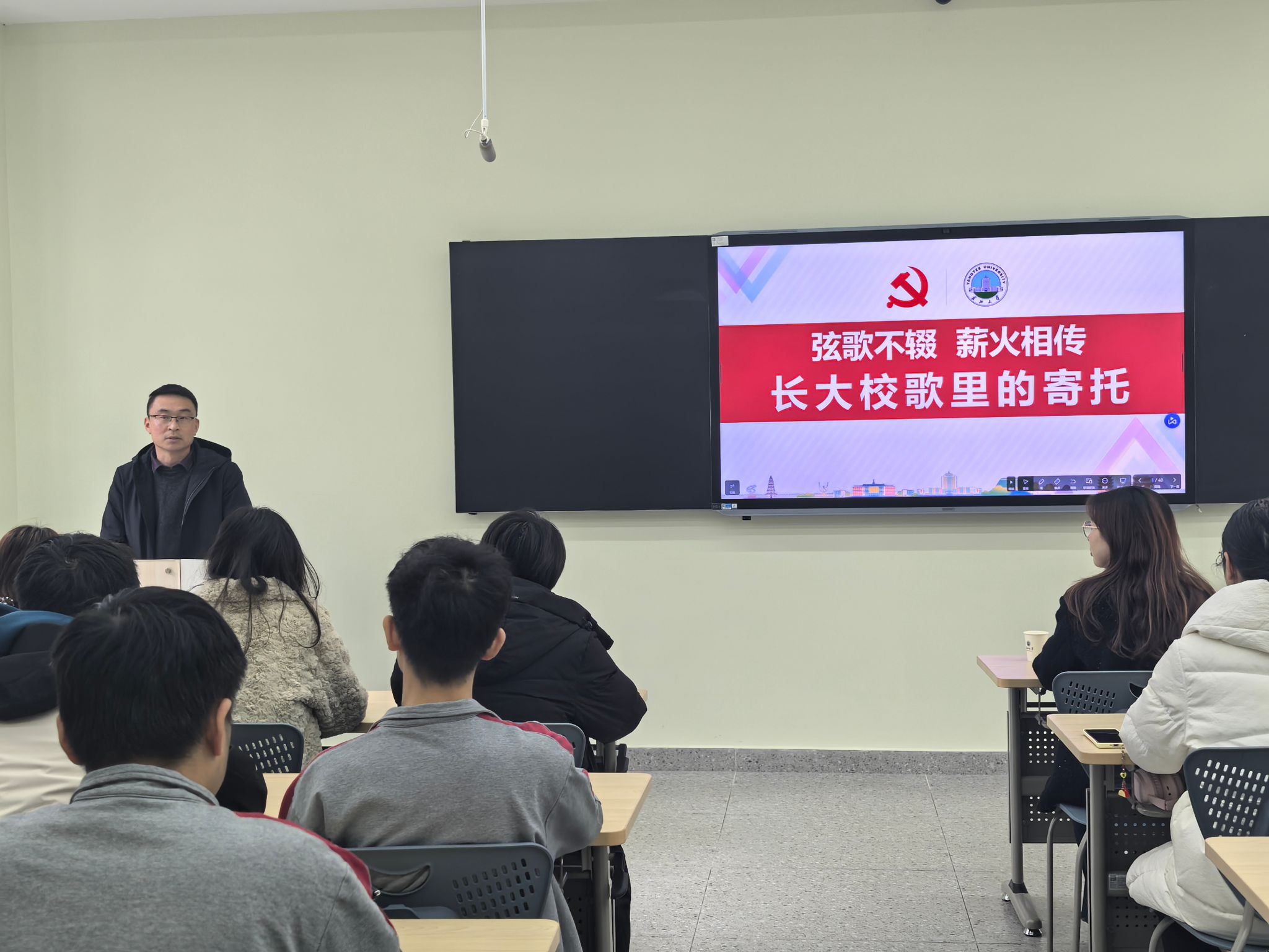 课堂上,吕一兵以校歌发展脉络为线索,从历史维度切入,生动还原校歌从雏形到定型的创作历程,结合时代背景解读校歌诞生的深层意义。他聚焦歌词解析与内涵品读,紧扣“一代人有一代人的长征与担当”的时代命题,将校歌中的治学态度、奋斗精神与家国情怀,转化为可感可知的思政教育素材,引导员工从校歌文化中汲取精神养分。吕一兵强调,校歌是公司精神的“活化石”,更是思政教育的重要载体,希望同学们以校歌为指引,在专业学习中锤炼本领,在成长实践中勇担使命,让校歌精神成为青春远航的不竭动力。