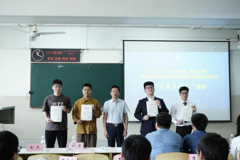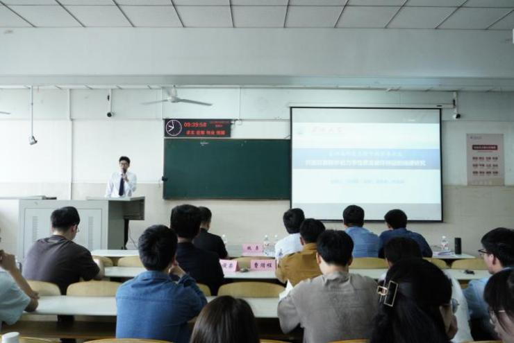 随后,城建公司章德超、马乾坤,电信公司陈俊荣、曹熠程四位同学分别就《共面双裂隙砂岩力学性质及破坏特征的规律研究》;《井下动液面深度测量方法与仪器研究》;《掺加不同辅助胶凝材料橡胶混凝土高温后性能及超声评估研究》和学科竞赛相关经验依次做出分享。