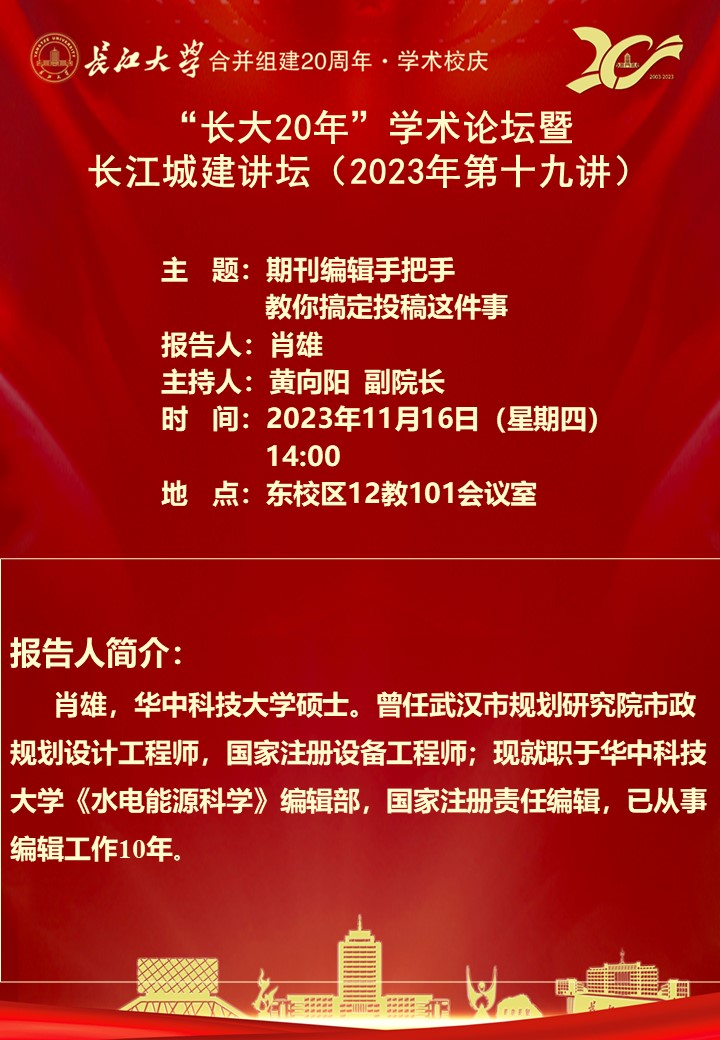 “长大20年”学术论坛暨长江城建讲坛(2023年第十九讲):期刊编辑手把手教你搞定投稿这件事