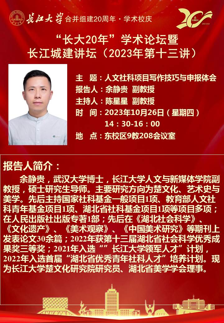 “长大20年”学术论坛暨长江城建讲坛(2023年第十三讲):人文社科项目写作技巧与申报体会