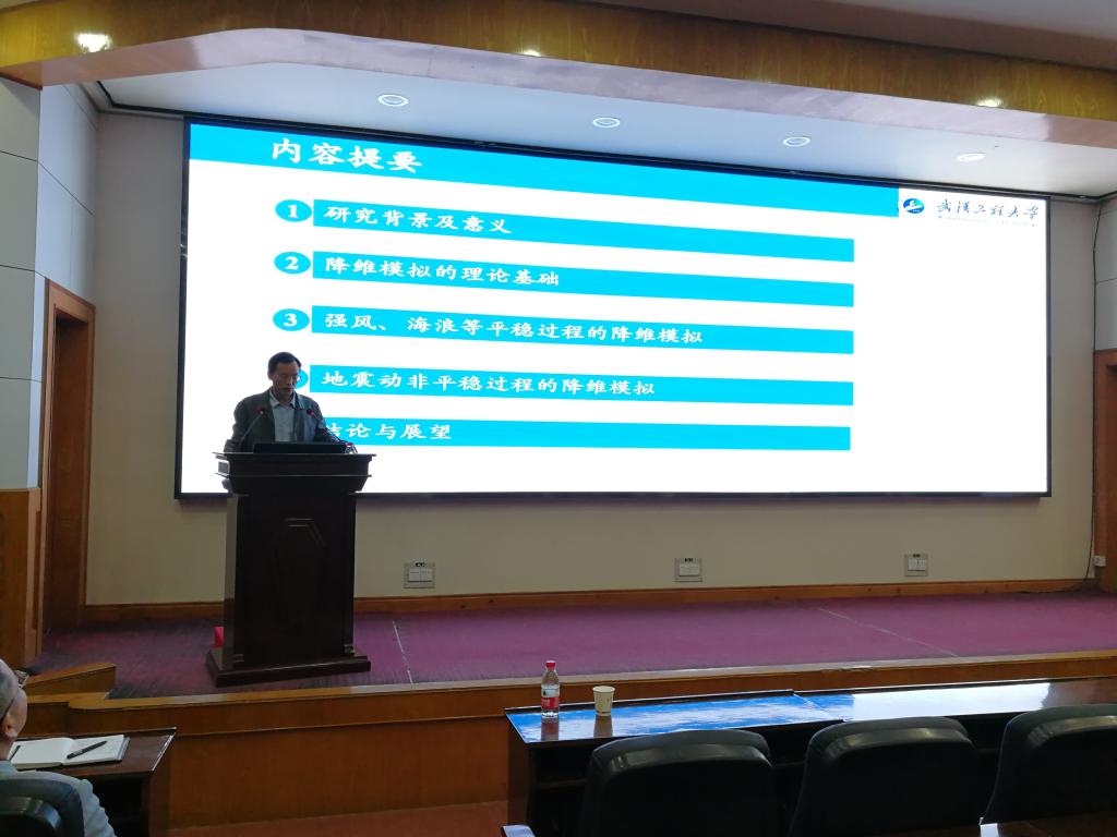 2021年10月19 日下午16:30,武汉工程大学特聘教授、博士生导师、学科带头人,湖北省高等公司优秀中青年科技创新团队带头人,首批国家级一流本科课程《弹性力学》负责人,中国振动工程学会理事、中国振动工程学会随机振动专业委员会委员、《振动与冲击》编委刘章军教授为beats365官方网站的师生们带来一场主题为“灾害性动力作用的降维模拟及应用”的专题讲座。