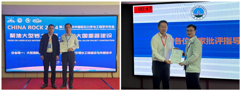 本次年会以“聚焦大型岩土工程,服务大国重器建设”为主题,邀请了国内外多名院士和业内专家开展主题报告。公司是本届学术年会的协办单位之一,肖桃李经理被邀请作为分会场一特邀报告的主持人。赵云峰副教授在大型岩土工程分会场作题为《基于声发射的材料破坏雪崩特征研究》的主题报告,路世伟副教授在大型通航工程建设分会场作题为《地下双圆形隧洞的动力响应特征理论研究》的主题报告,他们还就与会者的各种提问进行了深入探讨与交流。外国职工苏晨博士在博士及职工论坛作题为《基于蜂群优化算法和深层特征选择的路面裂缝自动识别研究》的主题报告。研究生程导分享了“SH波不同波形下对空穴的动力响应特性研究”,李顺分享了“导电水泥基复合材料的机敏性能研究”,司余洁分享了“含共面双裂隙岩体力学特性及断裂特性分析”,胡量分享了“雁型双裂隙砂岩力学特性及裂纹演化规律研究”,刘思其分享了“页岩水化扰动损伤试验研究”,陈泽曦分享了“花岗岩残积土水理化效应对隧洞压力拱的影响”,梁延续分享了“岩石冲击损伤演化特性及加荷统计损伤本构模型”。