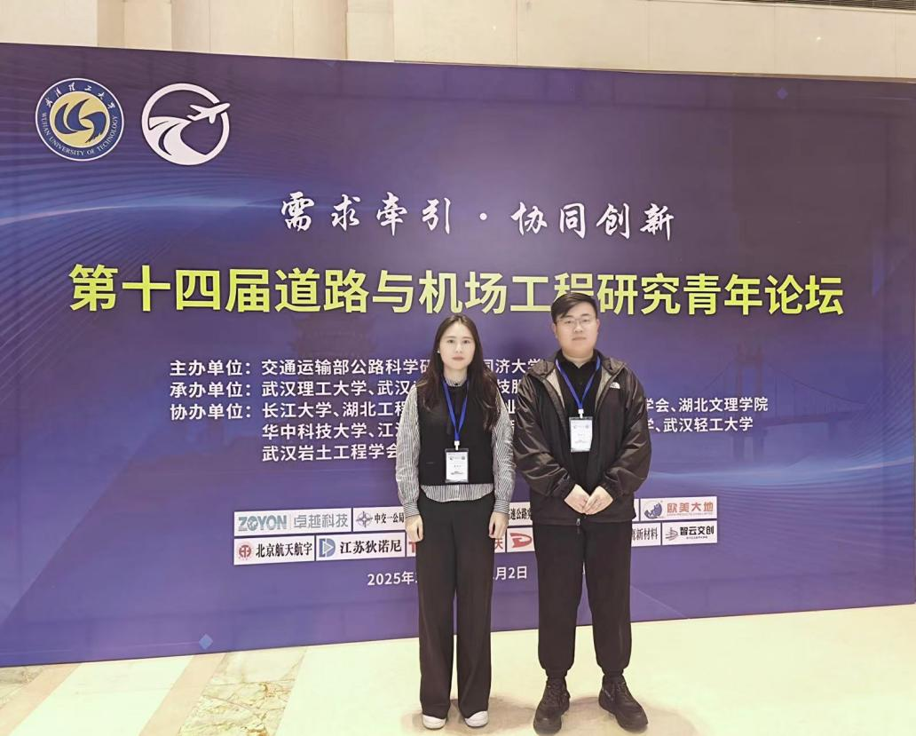 为深入开展道路与机场工程领域的学术交流,推动相关学科的创新研究,2025年10月31日至11月2日,公司协办的第十四届道路与机场工程研究青年论坛在武汉成功举办。本次论坛围绕道路机场工程材料、结构设计与智能养护等前沿方向开展交流,吸引了来自全国的专家学者和青年科研人员,共同探讨行业发展的新趋势与新技术。公司蔡凤杰、张宏飞两位教师参加了本次论坛。