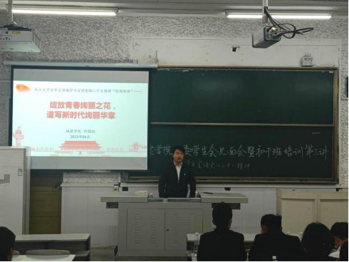 (通讯员 张剑琳 郭甲堃)绽放青春绚丽之花,谱写新时代绚丽华章。为进一步提升城建公司员工干部的思想水平与执行能力,4月6日下午,公司在西校区3教T1教室面向主要员工干部进行党的二十大精神宣讲,beats365青年宣讲团成员、院团委副书记何儒权对党的二十大精神进行了宣讲,党建就业专干胡冰恒、22级辅导员杜琛、第十九届团委员工会全体成员、22级初干班学员及青马学习小组参加本次培训。