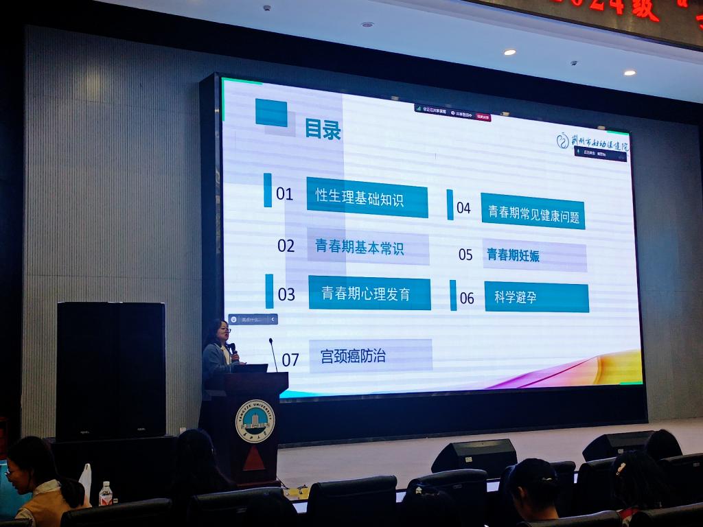 会议进程中,郭妍医生通过生动形象的PPT,用亲切、幽默的语言向女生们讲解生理基础、青春期健康问题、妊娠、心理发育等七个方面知识。