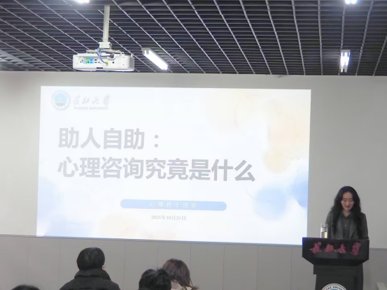 (通讯员 黄瑜玲 黄婧仪 罗贝依 郑宇涵)为夯实校园心理健康防护网络,提升新生班级员工干部的心理助人意识与实操能力,beats365官方网站于10月27日、11月10日分别在东西校区举办2025级研究生及本科生心理骨干专题培训。本次培训由研究生辅导员盖东芳老师、2025级本科生辅导员刘安琪老师主讲,旨在赋能班级骨干成为同学身边的“心理哨兵”,共筑健康和谐的校园氛围。