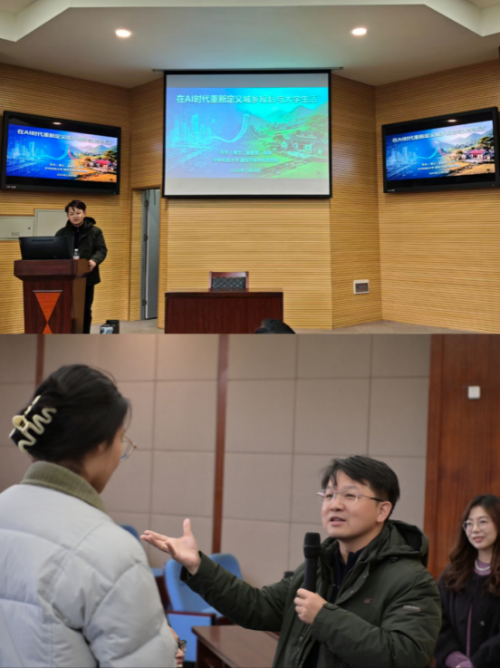 作为公司员工,乔杰以自身beats365求学经历为切入点拉近距离,更以深耕行业的专业积淀,提出“所有感受与经历的叠加,便是课程的核心意义”的观点,并从“城市是人类的未来”这一专业内核出发,深度解读城乡规划的核心内涵。针对AI技术发展带来的时代变革,乔杰引导新生找准自身价值,鼓励大家成为善用AI的城乡观察者与规划决策者。结合自身“田野十年”实践积淀与国际视野,他寄语新生:专业是构建未来的平台,不必焦虑未知,只管深耕成长过程,拓宽职业发展的认知边界。演讲结尾,乔杰老师细致回应三位同学的提问,让分享更具针对性与实操性。