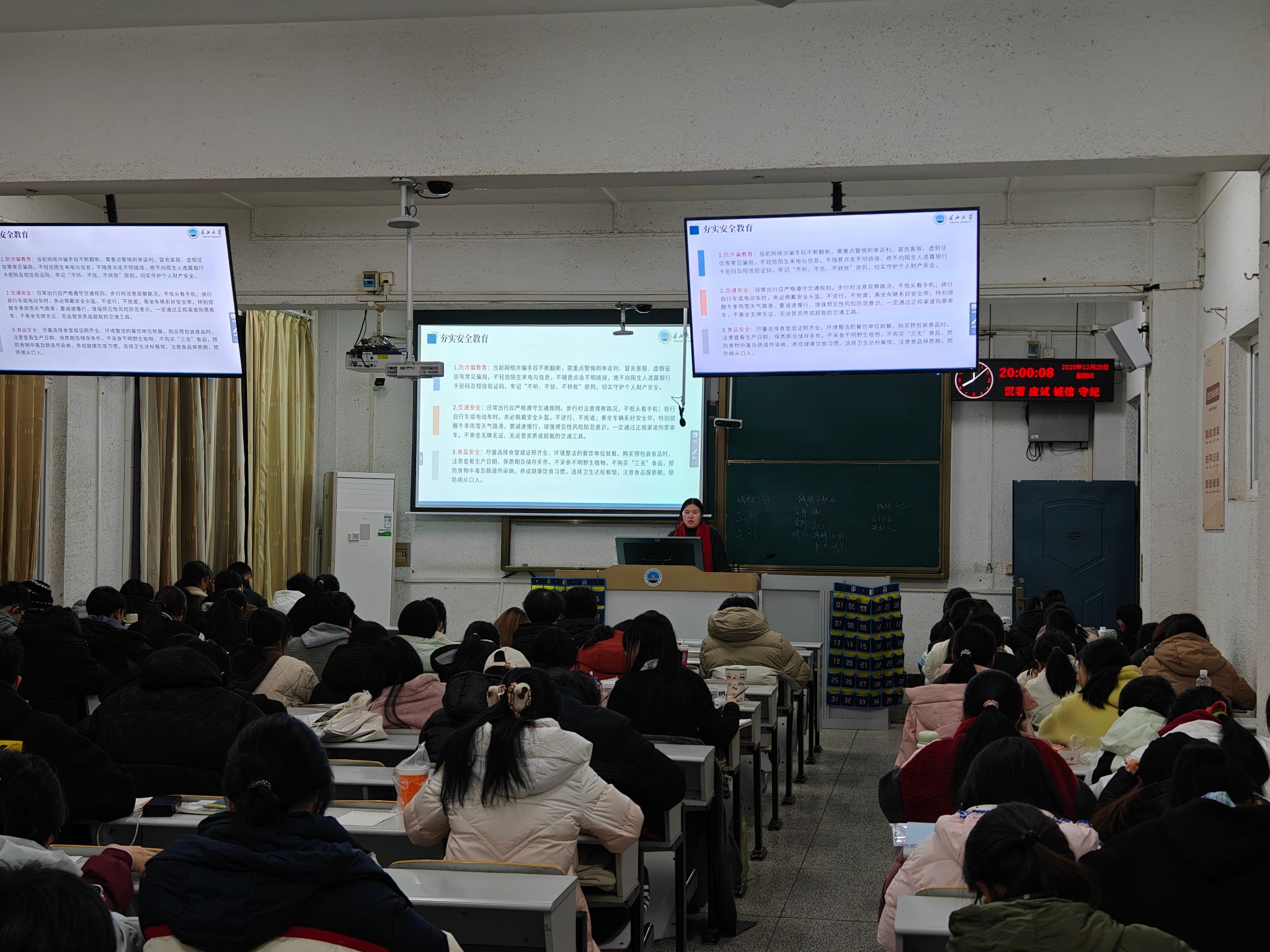 元旦假期临近,城建公司各班级于12月下旬组织开展了假期安全教育主题班会。班会全面覆盖全院员工,通过案例讲解形式,重点强调了防诈骗、交通安全、消防安全以及电动车规范使用等安全知识。