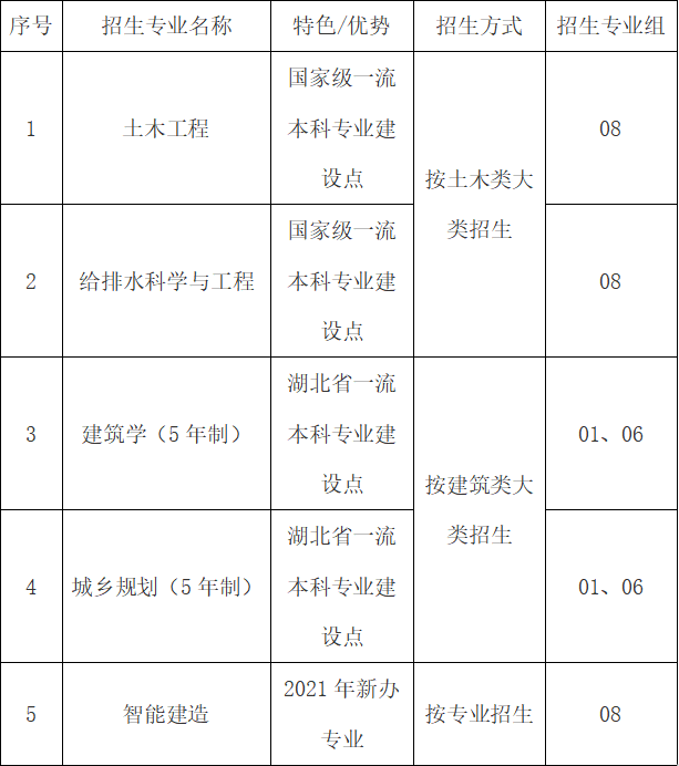 建筑学专业2000年开始招收本科生。为湖北省一流本科专业建设点,建设有建筑技术研究中心、历史建筑研究中心和BIM技术中心。拥有建筑学一级学科硕士学位点,下设建筑学、城乡规划两个培养方向。围绕区域城市建设的关键问题,聚焦“绿色建筑技术”和“城市遗产更新”两个科研方向。