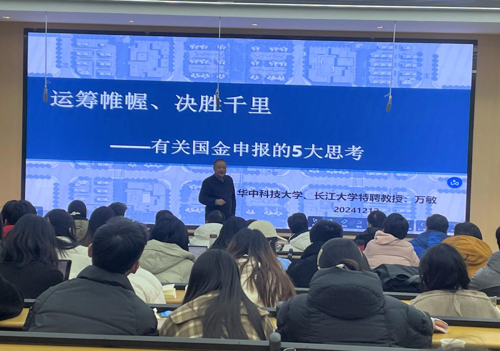 接着,万敏教授作题为“运筹帷幄、决胜千里——有关国金申报的5大思考”的基金申报经验分享。他主要从五个方面来介绍:选题(思想独特、揭示问题)、定向(方案优选、逻辑耀眼)敲锣(明确主题、综述自擂)、吹号(提炼关键、言简意明)、貘余(于细微处、抚人心扉)。